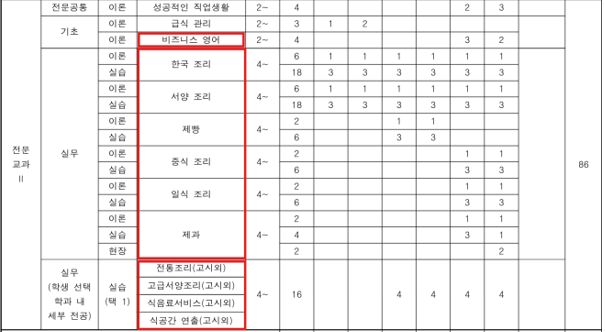 또한 선택과목으로 다양한 조리,