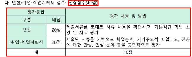 면접과 학업계획서의 비율이 40%로
